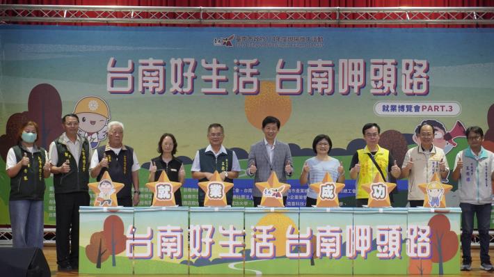 今日就博會由副市長葉澤山、勞工局局長王鑫基、臺南市私立慈幼高級工商職業學校校長陳素貞、勞動部勞動力發展署雲嘉南分署副分署長許慧香、國軍退除役官兵輔導委員會臺南市榮民服務處處長王國能、臺南直轄市總工會理事長黃江福、台南市總工會監事會召集人莊名賢、台南市職業總工會秘書長吳允昌、台南市產業總工會常務理事王德雄、大台南總工會理事吳秀琴、理事郭國仁、社團法人台南市勞工志願服務協會監事會召集人林文一、臺南市中小企業服務中心主任陳宗明、台南市中小企業榮譽指導員協進會會長吳妤姍、林俊憲立委蔡筱薇議員聯合服務處特助游宗和等貴賓共同參與,藉由就業博覽會的啟動儀式為求職者「加油打氣」。