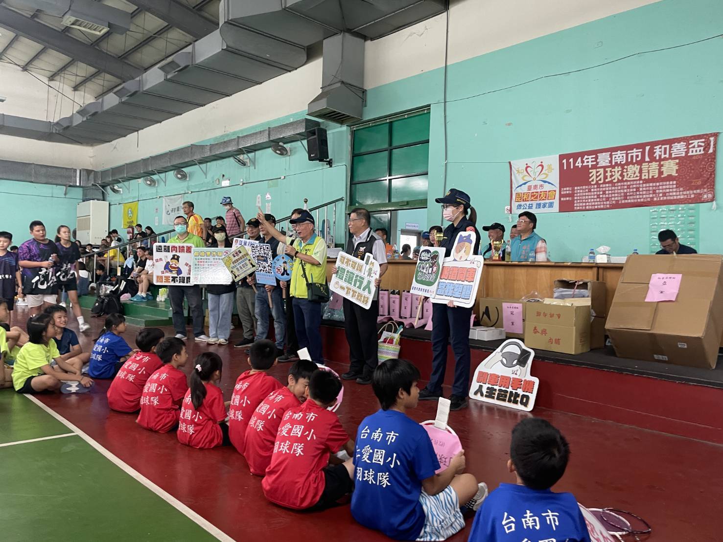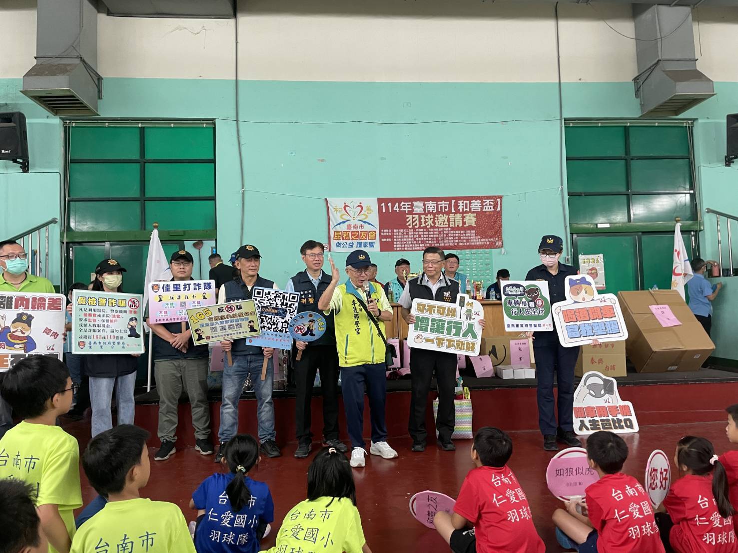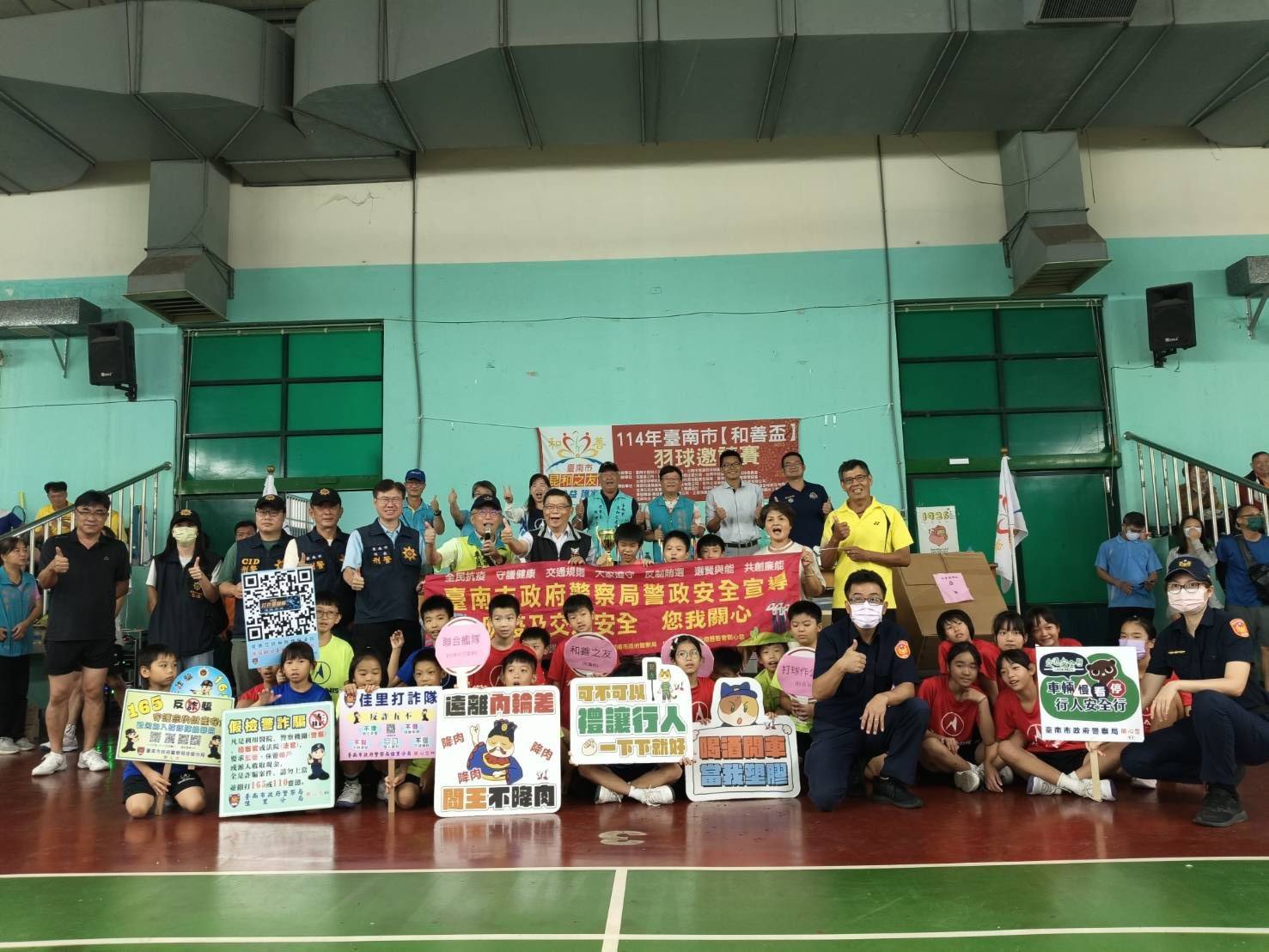 台南市社團法人昆和之友會舉辦「和善盃」羽球邀請賽,佳里警分局到場作反毒及反詐騙宣導活動。