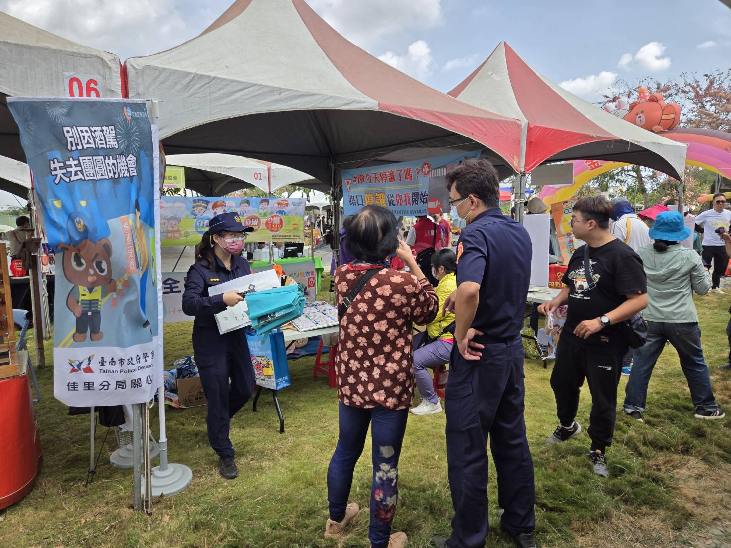 台南市政府警察局路老師李晟邦警官及志工亦受邀到場宣導防疫安全,為求防疫安全與社區同步落實的重要性,與西港區公所區長李鴻裕及主秘黃崇賢等人於現場籲請與會民眾及遊客落實登革熱防治巡、倒、清、刷四大步驟及反詐騙宣導。另路老師李晟邦警官及政風室宣導科員與志工為宣導「1959」全國動物保護專線、優良政風、預防環保案件犯罪,以彈珠台闖關遊戲融入有獎徵答議題,加強宣導廉政、動保案件及環保犯罪案件具體案件策略作法與現場來賓熱烈互動,宣導效果良好。