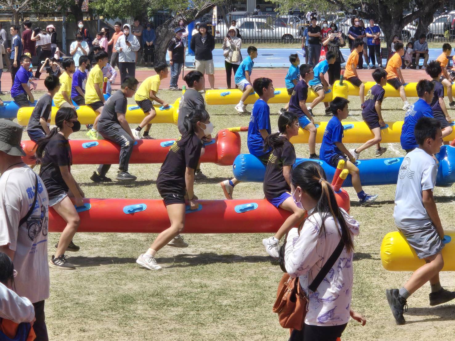 本次田徑賽事計有跳繩(雙人跳及6人長繩跳)、短跑、拔河、趣味競賽及低、中、高年級及幼兒園50公尺大隊接力賽。其中最吸睛項目為低年級、幼兒園50公尺大隊接力及高年級趣味競賽(龍行大運),讓各家長數位相機最快塞滿記憶體,場內接力,場外家長的加油聲此起彼落,比場內更緊張更用心,一心多用,一邊加油,一邊鼓掌,一邊拍照或錄影,真得的是忙得達到人仰馬翻。