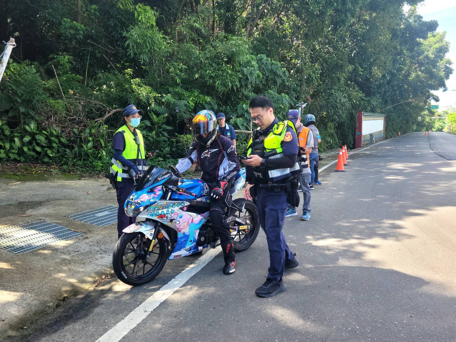 圖:麻警辦理「監、警、環」聯合稽查,強力維護六甲山區交通安寧(記者田進山攝)
