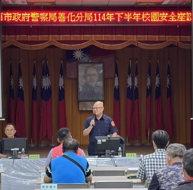 【記者田進山/台南報導】為維護學生安全、守護校園治安,善化警分局於昨(19)日舉辦「114年下半年校園治安座談會」,邀請了臺南市學生校外生活輔導會、轄內各級學校的校方代表、轄區里長及相關單位參與,共同研討如何強化校園安全管理與確保學生安全環境中學習議題。
