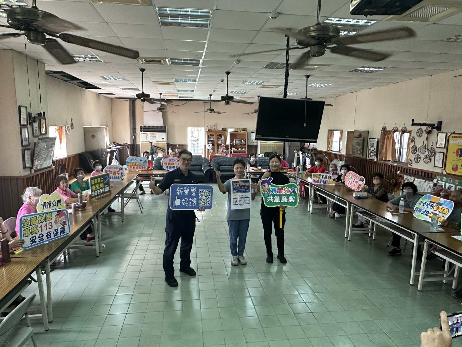 9月份係全國交通安全月,新營分局於9月17日前往新營區太南里關懷據點,針對高齡長者容易忽略的交通安全問題及公務員受贈財物標準、拒絕不當請託關說及飲宴等觀念加強宣導,會中組長張明華教導長者應認知自身因年齡增長伴隨視力、聽力、反應力及行動力的退化,凡年滿75歲的駕駛人需要每3年進行一次體格檢查與認知功能測驗,或檢附未患中度以上失智症的證明,才能換發效期3年的新駕照等觀念,如長者自行騎乘自行車亦應評估天候狀況及佩戴安全帽以維護自身安全;另因應10月初中秋節將屆,加強宣導公務員廉政倫理規範內容:針對特定公務員送禮市價不得超過新臺幣500元、或對多人贈送總額標準為市價新臺幣1,000 元以下之禮品。