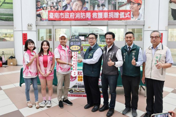 【記者黃石泉/台南報導】太陽國際企業董事長王怡仁與兩位女兒共同經營的金鋼興業、競美國際企業,近日共同合資捐贈1輛價值400萬元的高規格救護車予台南市政府,今(24)日上午於永華市政中心舉辦救護車捐贈典禮,未來將交由消防局使用,強化急救能量,守護市民健康。立委林俊憲、議員沈震東及各議員服務處代表皆出席觀禮。