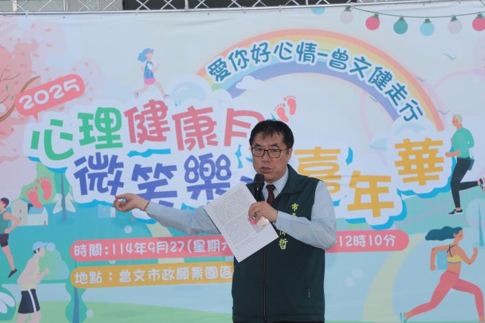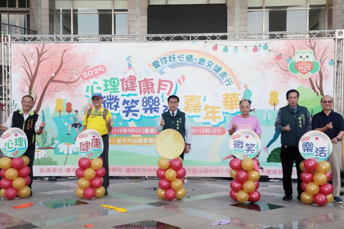 【記者陳岑博/台南報導】台南市政府重視市民心理健康,並響應世界衛生組織訂定的「世界自殺防治日」(9月10日)與「世界心理健康日」(10月10日),將每年9月10日至10月10日訂為本市「心理健康月」。今(27)日並在曾文市政願景園區舉行「微笑樂活嘉年華」暨「愛你好心情~曾文健走行」活動,台南市長黃偉哲親自出席活動,與現場民眾互動,並為健走儀式鳴笛,現場氣氛熱鬧。