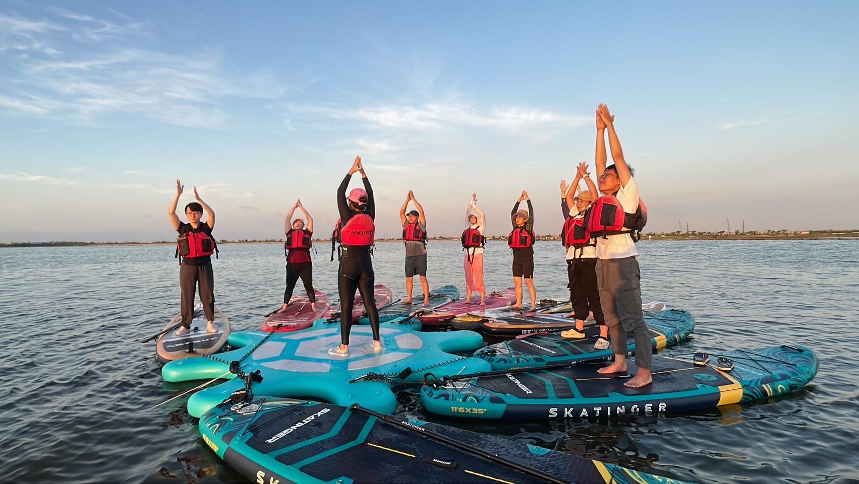 【特派員侯翠玲/台南報導】將軍區公所27日舉辦「舟遊北航道獨木舟」及「扇形鹽田SUP瑜珈」體驗活動,參與者在專業教練帶領下,在北航道生態水域划舟、在扇形鹽田夕陽下靜心伸展,感受將軍區獨特的海洋風貌。