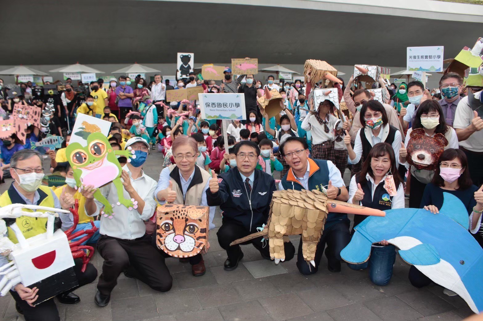 即使在疫情期間,臺南在地環境行動~守護動物大遊行也從未中斷。今年(2025)6月,博士最後一次親訪臺南,參與「根與芽動物聯合國」行動,十七所國中小學生化身動物國代表,為野生動物與生物多樣性發聲,博士親自擔任「人類代表」,勉勵學生們:「每一個人、每一天,都能做出改變。」
