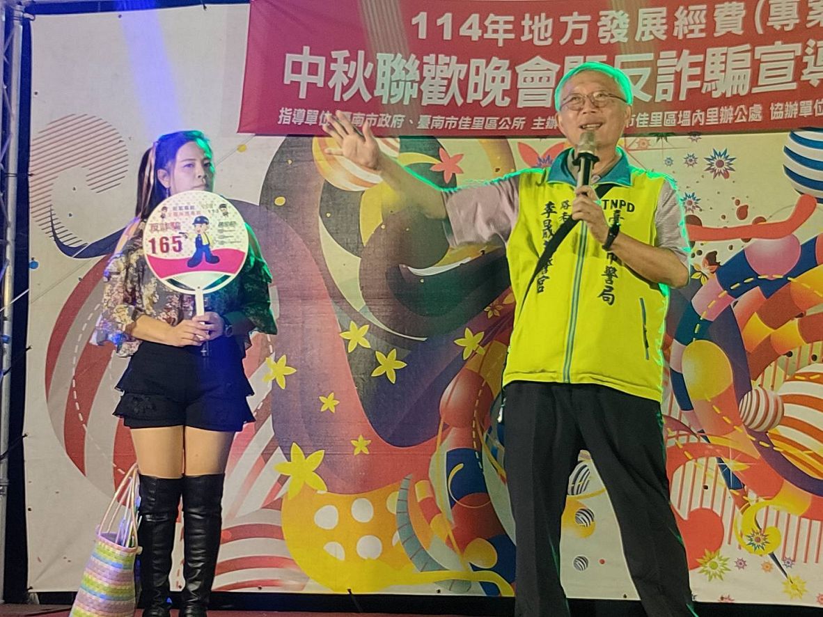台南市政府警察局佳里分局反詐騙宣導團由巡佐許智惠協同偵查佐吳哲維等人於現場作「165反詐騙儀表板宣導民眾受騙實例解析」、落實中秋優良政風及反貪腐廉政倫理案例、反酒駕及「防治家庭暴力」等婦幼安全常識宣導,籲請在場來賓牢記防詐3步驟,1聽、2掛、3查證,善用165反詐騙專線查證諮詢,避免受詐騙危害。