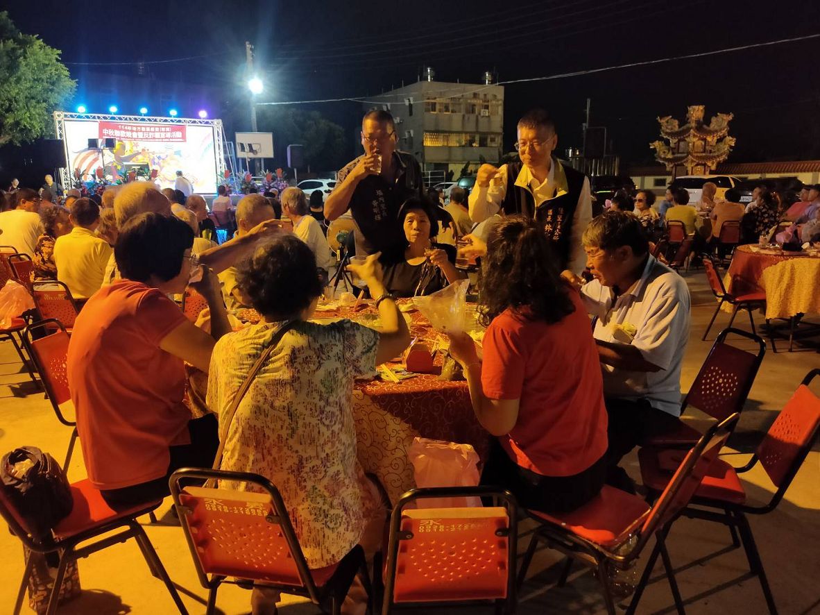歌友會會長郭美足,不遑多讓,也受邀上臺高歌一曲,帶動來賓上臺表演的氣氛, 隨後,區長林耿漢等人紛紛上臺引吭高歌,炒熱現場氣氛,讓現場氣氛嗨到最高點。
