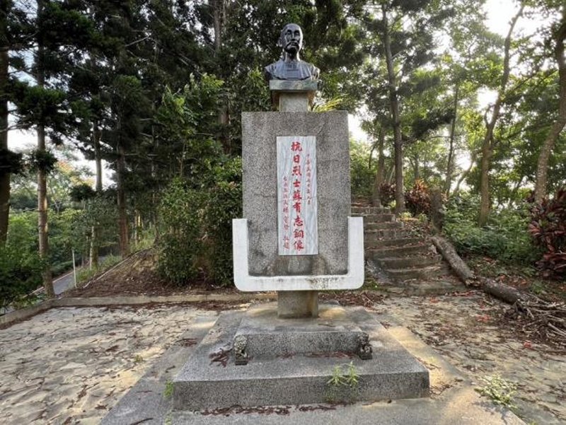 虎頭埤在蟋蟀生態館正對面有座蘇有志烈士銅像(記者田進山攝)