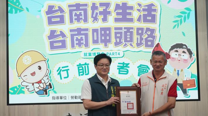 今(28)日在新營區民治市政中心行政大樓1樓大廳舉辦2025「台南好生活 台南呷頭路」第4場大型就業博覽會行前記者會,由副秘書長徐健麟、勞工局副局長顏靚殷、鹽水區公所區長陳文琪、大台南總工會理事長鄭山林、臺南直轄市總工會理事長黃江福、台南市產業總工會常務理事董嘉明、理事黃育彬、台南市職業總工會祕書長吳允昌、社團法人台南市勞工志願服務協會理事長梁志男、台南市中小企業榮譽指導員協進會會長吳妤姍、臺南市中小企業服務中心專員陳麗如、崑山科技大學研究發展處副研發長王平、社團法人中華職訓教育發展協會常務監事林尉民等多位貴賓親臨記者會,共同鼓勵求職者11月1日來「台南呷頭路」,找到好工作。