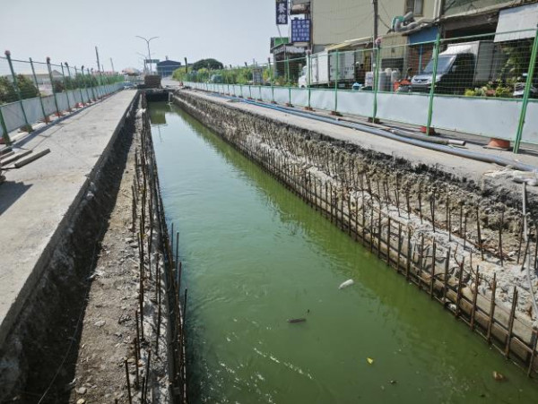 圖:臺南市北門區A幹線改善工程進行箱涵補強作業(記者王榮輝攝)