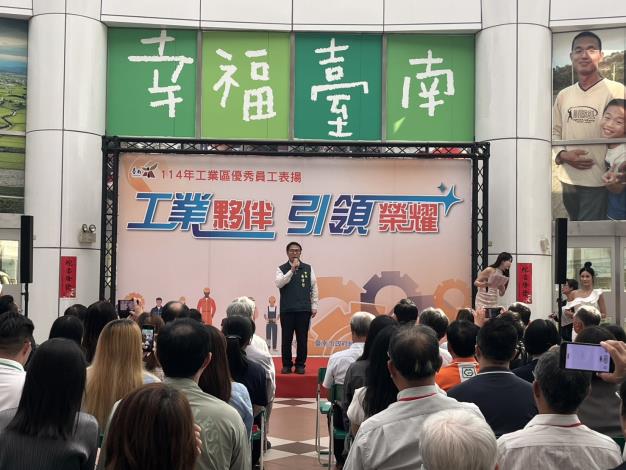 市長黃偉哲說,台南市是南部重要的產業聚落,不僅擁有完整的工業區布局,更是高科技、傳統製造及綠能交會的核心城市,這些員工是企業重要的關鍵支柱,本次為表彰本市各工業區員工對國家經濟發展之貢獻及發揚敬業樂群之精神,市府經發局特別請各工業區廠商協進會、工業會等單位推薦資深管理人員及績優從業人員進行表揚,藉由本次活動表揚優秀員工給予榮耀,傳遞對從業人員最高之敬意。