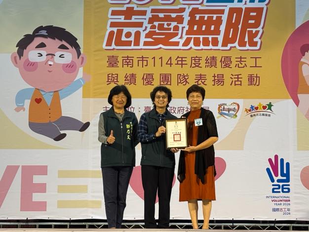 社會局長郭乃文表示,今(114)年度優秀的志工團隊包括以助人為樂、長期深耕社福工作的社團法人台灣青年社會服務推展協會祥和志工隊及臺南市永康區西灣社區發展協會志工隊;在文化領域方面,臺南市美術館志工隊以熱忱與專業為城市文化注入活力;而在守護健康的最前線,奇美醫療財團法人奇美醫院志願服務工作隊則以愛心與溫情陪伴病患,守護民眾的福祉。此外,也恭喜榮獲「績優家庭志工獎」的各個家庭,包括來自社會局的許保瑞、羅涼、許碧月、許美華、張進忠、許秋香、林皆慶;文化局的吳貞慧、吳貞萩、吳竺玲;衛生局的向紀寵、田富蓉;以及警察局的石瑞華、莊淑媚。這些家庭以實際行動詮釋將志願服務的精神化為日常生活的一部分,令人由衷敬佩。