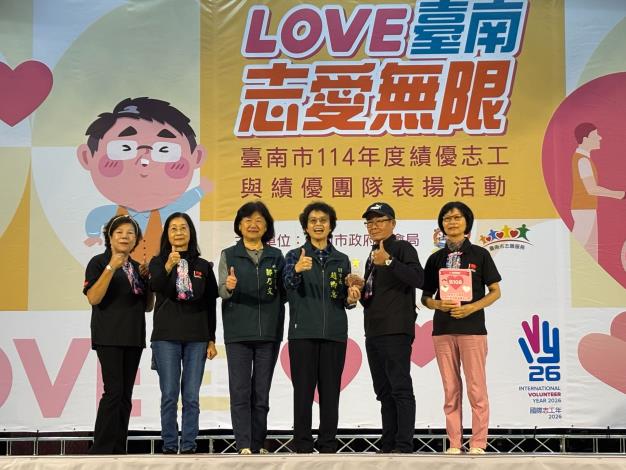 【記者陳岑博/台南報導】每年12月5日為國際志工日,為響應國際志工日的到來,臺南市政府今(22)日在南門勞工育樂中心演藝廳舉辦「臺南市114年度績優志工與績優團隊表揚活動」,由副市長趙卿惠代表市長黃偉哲頒獎給106位來自不同領域服務年資滿10年且時數已滿2,000小時的績優金質獎志工,並頒獎給4隊績優志工團隊、4組績優家庭志工等獲獎人員,市議員李啟維、王家貞、沈震東本人、立法委員林俊憲、陳亭妃服務處、台南市議長邱莉莉、市議員黃麗招、陳怡珍、林美燕、林依婷、蔡宗豪、曾之婕,盧崑福服務處代表均到場同賀,肯定志工們長期無私奉獻,活動現場溫馨熱鬧。