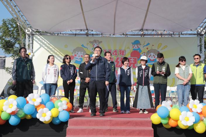 黃偉哲表示,今日天氣晴朗,看到這麼多家長與孩子一起參與,讓運動會現場氣氛熱鬧,感到十分開心。他祝福所有大朋友、小朋友都能與孩子們一同度過愉快的週末。