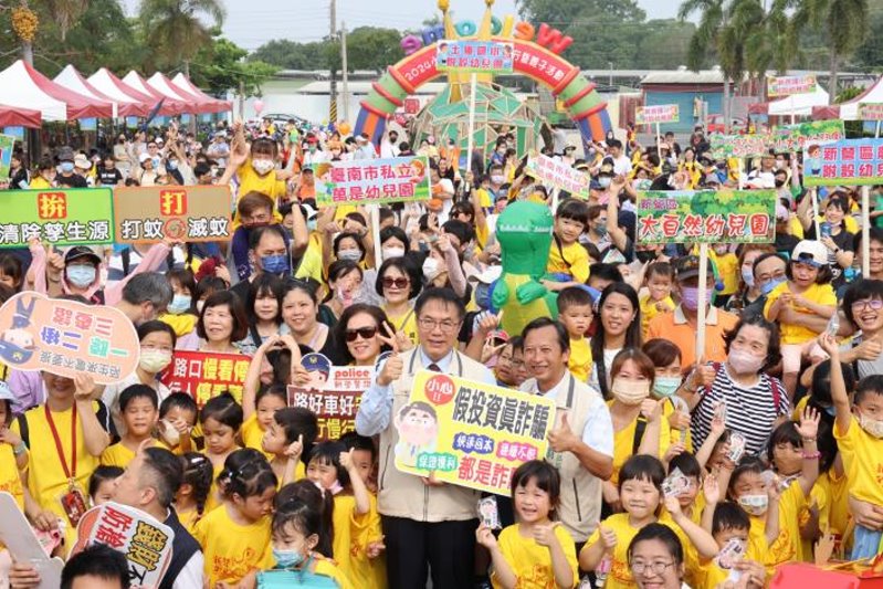 ,市長黃偉哲特別帶糖果到場為幼兒加油,立委陳亭妃及市議員沈家鳳、李宗翰、王宣貿也到場關心,現場相當熱鬧。
