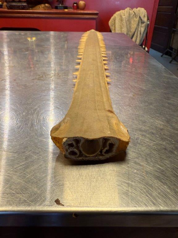 【記者田進山/台南報導】海巡署偵防分署北門查緝隊接獲檢舉,疑似有民眾利用網路平台刊登販賣「一級保育類野生動物產製品(鋸鰩之鼻-鯊魚劍)」,經循線追查與確認無誤,旋即報請臺灣新北地方檢察署指揮海巡署偵防分署北門查緝隊、南部分署第一一岸巡隊及海洋保育署等單位,組成專案小組共同偵辦,案於114年7至10月期間於新北(三峽)、臺中(大里)、臺南(新營)與高雄(阿蓮)等地區,分別查獲證物鯊魚劍計3支;專案小組復於臺南(玉井)地區查獲證物鯊魚劍1支,全案合計查獲4支,並依違反《野生動物保育法》移送新北及臺南地檢署偵辦。