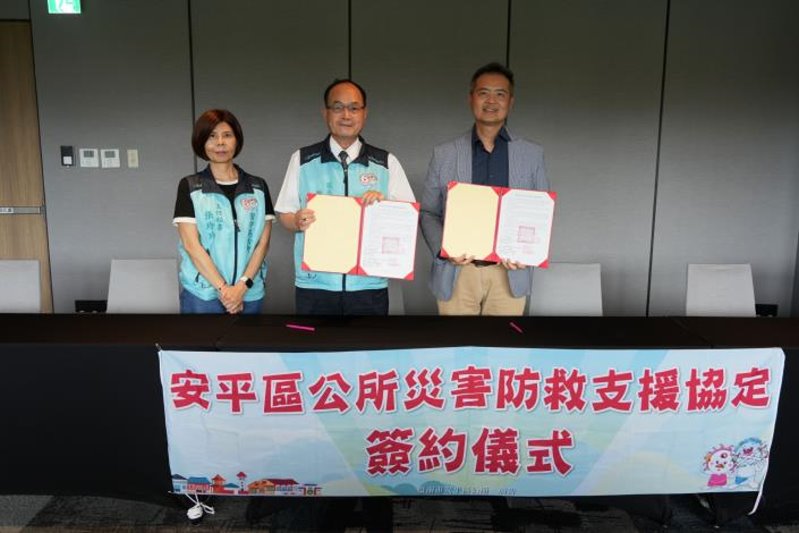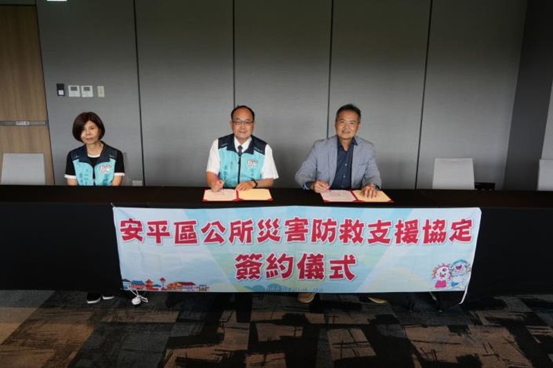 安平區公所與雅樂軒酒店簽訂災民緊急安置支援協定(記者田進山攝)