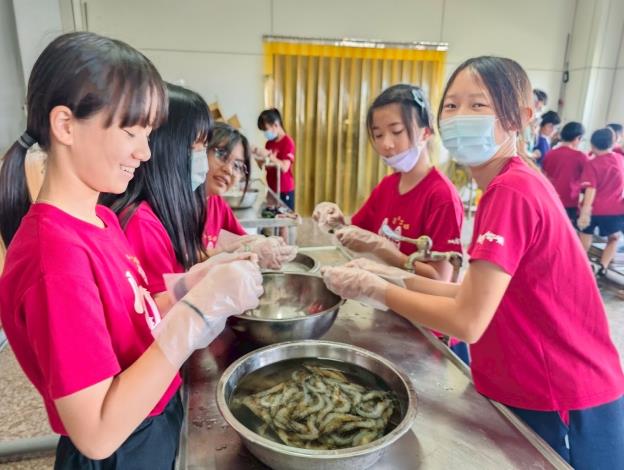 國小組特優土城國小因位處臺南最西側,社區以漁業為主要產業,學校課程即結合在地養殖特色,從認識養殖池環境、了解蝦的構造並製作立體模型,到實際動手完成蝦手捲料理,讓學生理解養殖漁業與餐桌之間的連結。學校亦攜手沿海蝦農,帶領孩子走出教室實地踏查養殖池,體驗養殖歷程並親手剝蝦,完成一趟結合知識學習與感官體驗的食農探索之旅。