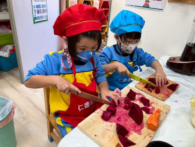 幼兒園組特優仁德幼兒園則以麵食為主軸,結合臺南在地蔬果與「我的餐盤」理念,規劃一系列富含創意的食農課程。針對幼兒對蔬菜接受度較低的情形,將蔬菜融入幼兒喜愛的活動中,安排孩子進入校園廚房蒐集午餐食材,並設計「菜園尋寶遊戲」、「蔬菜隱身術」等課程,走入菜園、親手製作麵條並參訪社區手工麵店,透過多感官體驗與在地飲食文化學習,培養幼兒完整的食農素養。