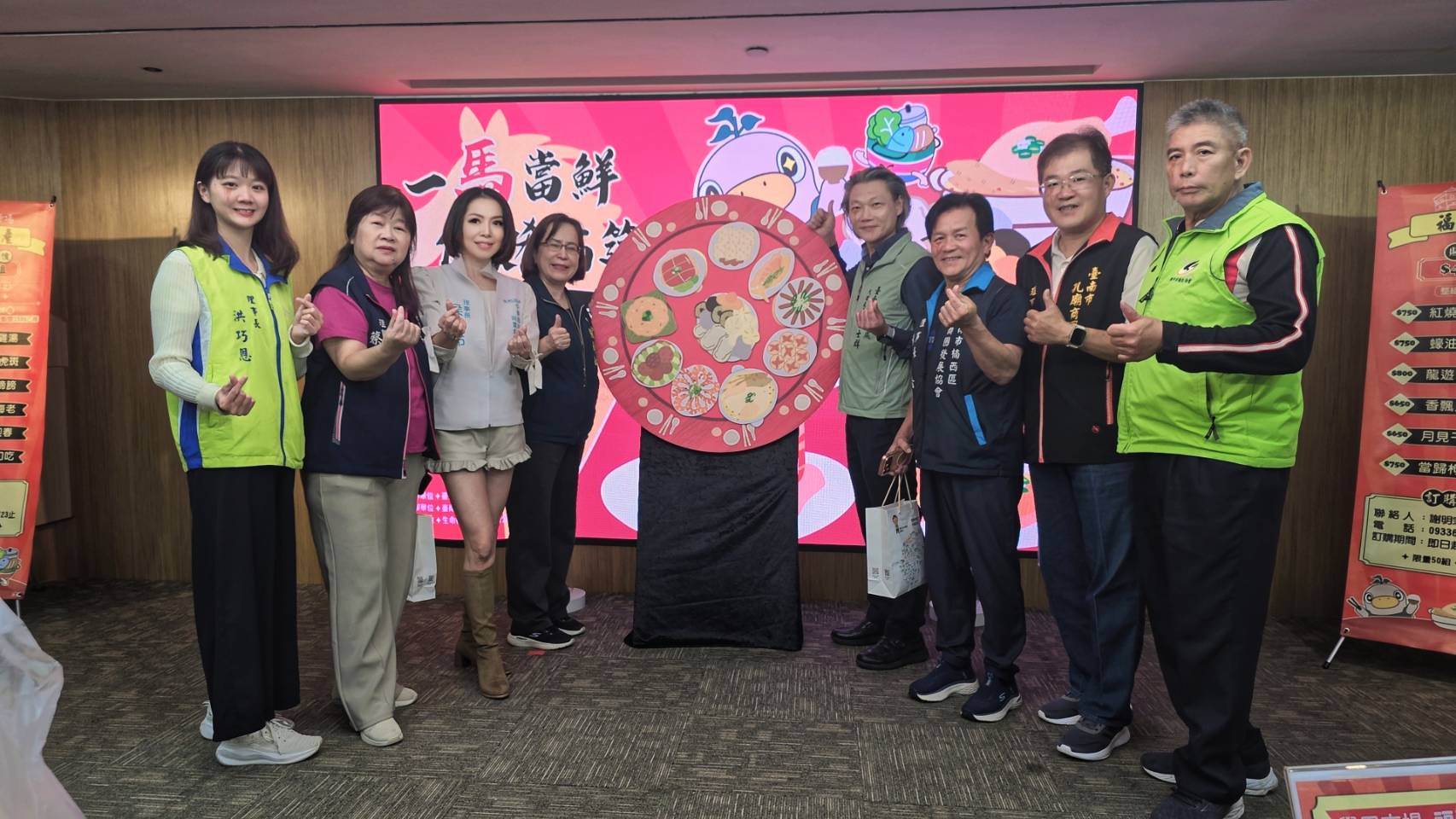 黃偉哲市長與貴賓於台南馬年市場年菜記者會合照。