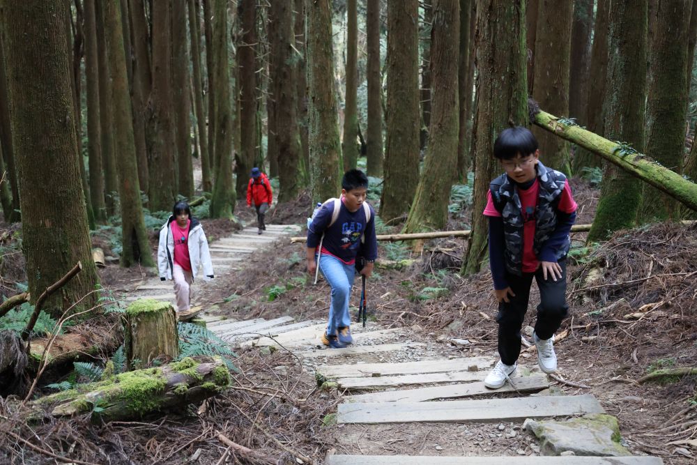 【記者黃石泉/台南報導】繼十一月底山海圳國家綠道內海之路、大圳之路兩路段之騎旅走讀,安南區顯宮國小師生一行二十五人於十九、二十兩日再度啟程完成原鄉之路與聖山之路之走讀行程。十九日中午於特富野社區享用部落風味餐後,從特富野古道南端開始爬坡上行,互相鼓勵扶持,好不容易通過前面2.6公里的陡坡考驗,後面3.7公里則有「水山線」舊鐵道與筆直的柳杉人工林相伴,是平坦好走的步道,沿路共有約13座木橋,師生們順利於天黑前從北端自忠登山口搭上接駁車。