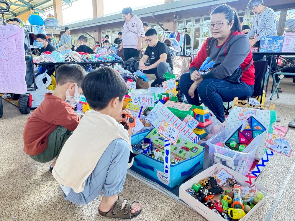 活動期間,不少孩童在家長陪同下擔任「小小老闆」,學習金錢收支概念,活潑可愛的叫賣聲此起彼落,為市集增添活力與樂趣,二手攤位前,可見孩子們在家長陪伴下試穿衣物、鞋子,開心地轉圈詢問「這樣好看嗎?」現場充滿溫馨互動;有的小朋友成功售出家中玩具後,興奮地再到其他攤位挑選心儀物品,體驗「賣掉舊物、換得新寶藏」的成就感; 另有孩童化身「小小美甲師」,專注替顧客裝飾指甲,展現創意與自信,吸引不少民眾駐足欣賞。