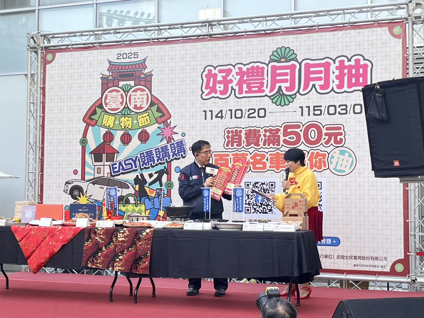 經發局補充表示,臺南購物節將於1月29日舉辦第3次「好禮月月抽」活動,民眾只要完成消費發票登錄,即有機會抽中現金、3C家電及多項豐富好禮。歡迎民眾來臺南旅遊消費、逛市集辦年貨,一邊感受最濃厚的年節氛圍,一邊參加購物節抽獎,歡喜迎接幸福新年。