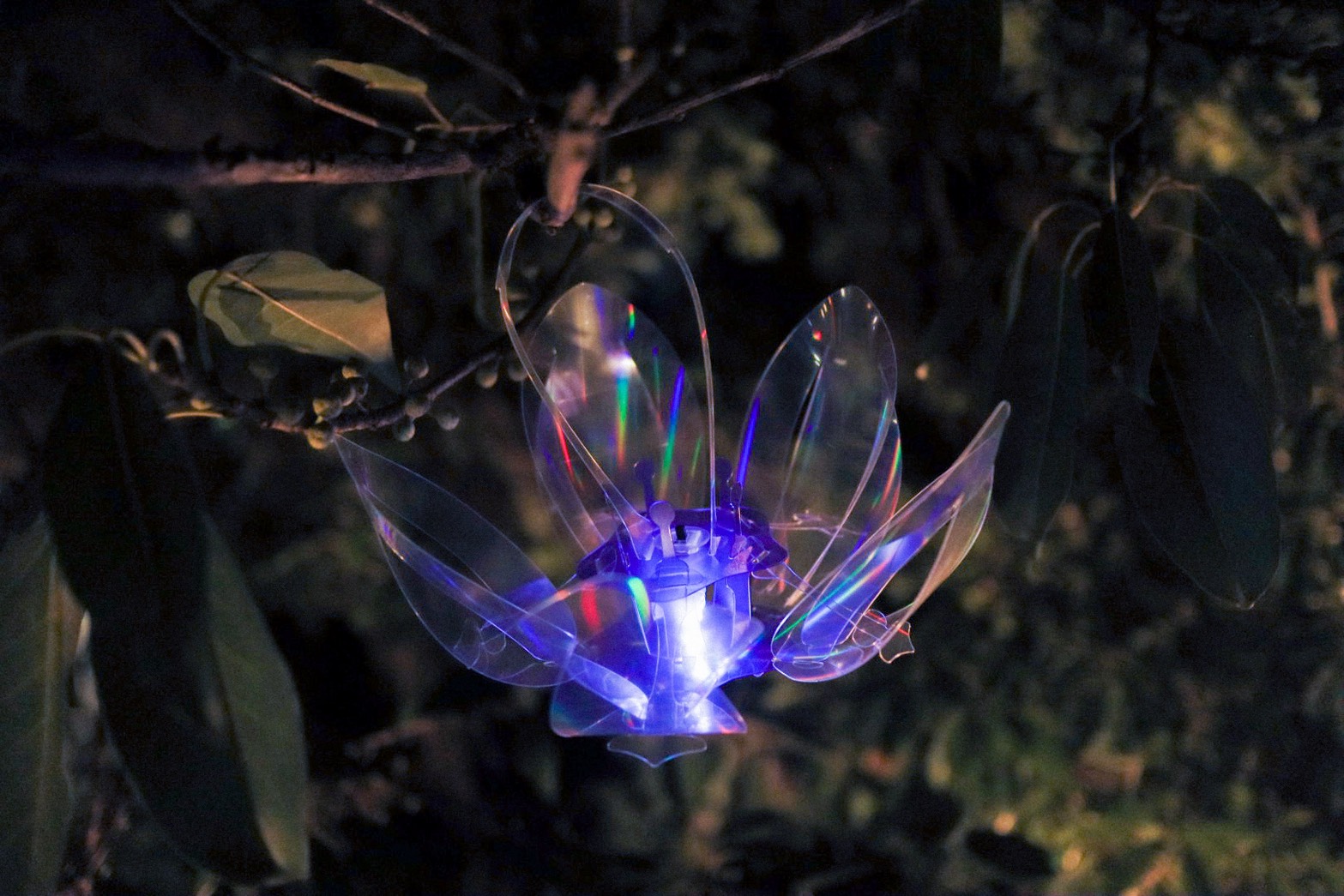 最具標誌性的空山祭提燈,也在連假期間成為民眾夜遊山林的重要陪伴。今年推出的「水晶花提燈」為全臺首款可手動開合的互動式提燈,晶透材質呼應展場光影作品,透過旋轉與開闔,讓光線隨行走節奏自然流動。提燈採用單一可回收材質製作,並以免費循環借用方式提供民眾體驗。文化局呼籲民眾共同遵守借用規範,於離場時歸還提燈,讓這份光影能持續被更多人共享,在安心、有序的環境中,一起愉快地提燈賞燈、感受空山祭的夜間風景。