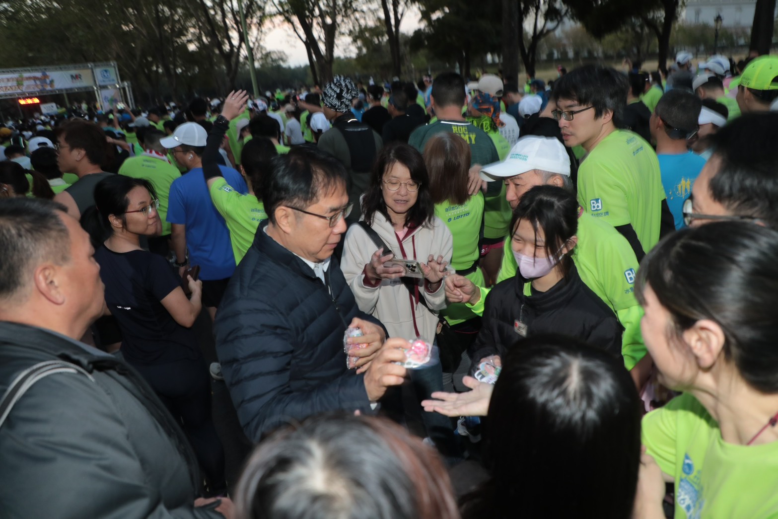 市長黃偉哲今(11)日受邀出席「2026臺灣國際馬拉松 in 臺南」活動,與參賽選手互動並為活動開跑加油。