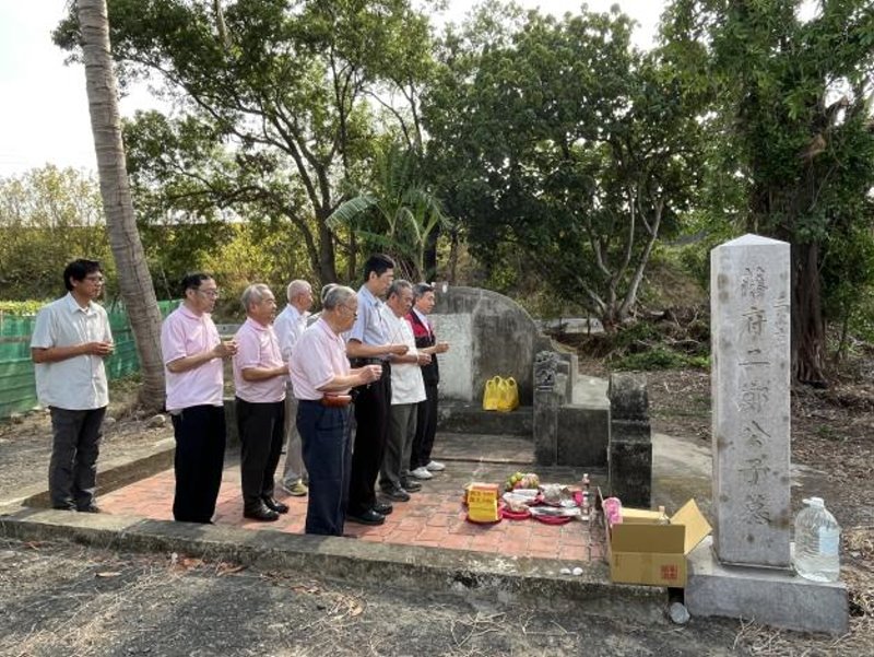 另,本(4)月2日同樣由文資處秘書傅清琪帶領處內同仁,前往位於柳營區果毅後的「陳永華墓」祭拜。人稱「鄭氏諸葛」的陳永華,曾任鄭成功的參軍,人稱世子文臣第一。其葬於今柳營區果毅後,雖清國領台後,便將其遷葬故鄉福建同安,但留在原處的陳永華墓及墓碑,仍凸顯墓主對柳營、官田、六甲等地及整個臺南歷史發展的重要象徵。此次同行祭祀的亦有臺南市柳營區公所,由區長顏文穗帶隊、蔡育輝議員服務處代表、陳亭妃立委沈家鳳議員服務處代表、林俊憲立委李宗翰議員服務處代表及官田慈聖宮主委陳俊銘、林志隆先生等多名地方人士。