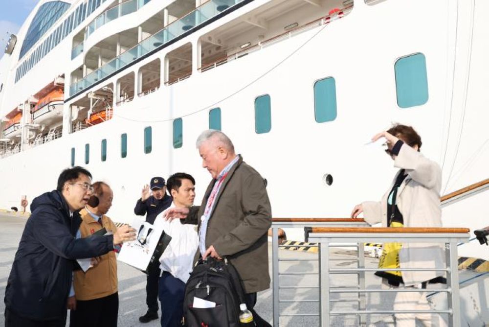 國際豪華觀光郵輪海洋富士號到訪安平港 黃偉哲親迎旅客贈禮品