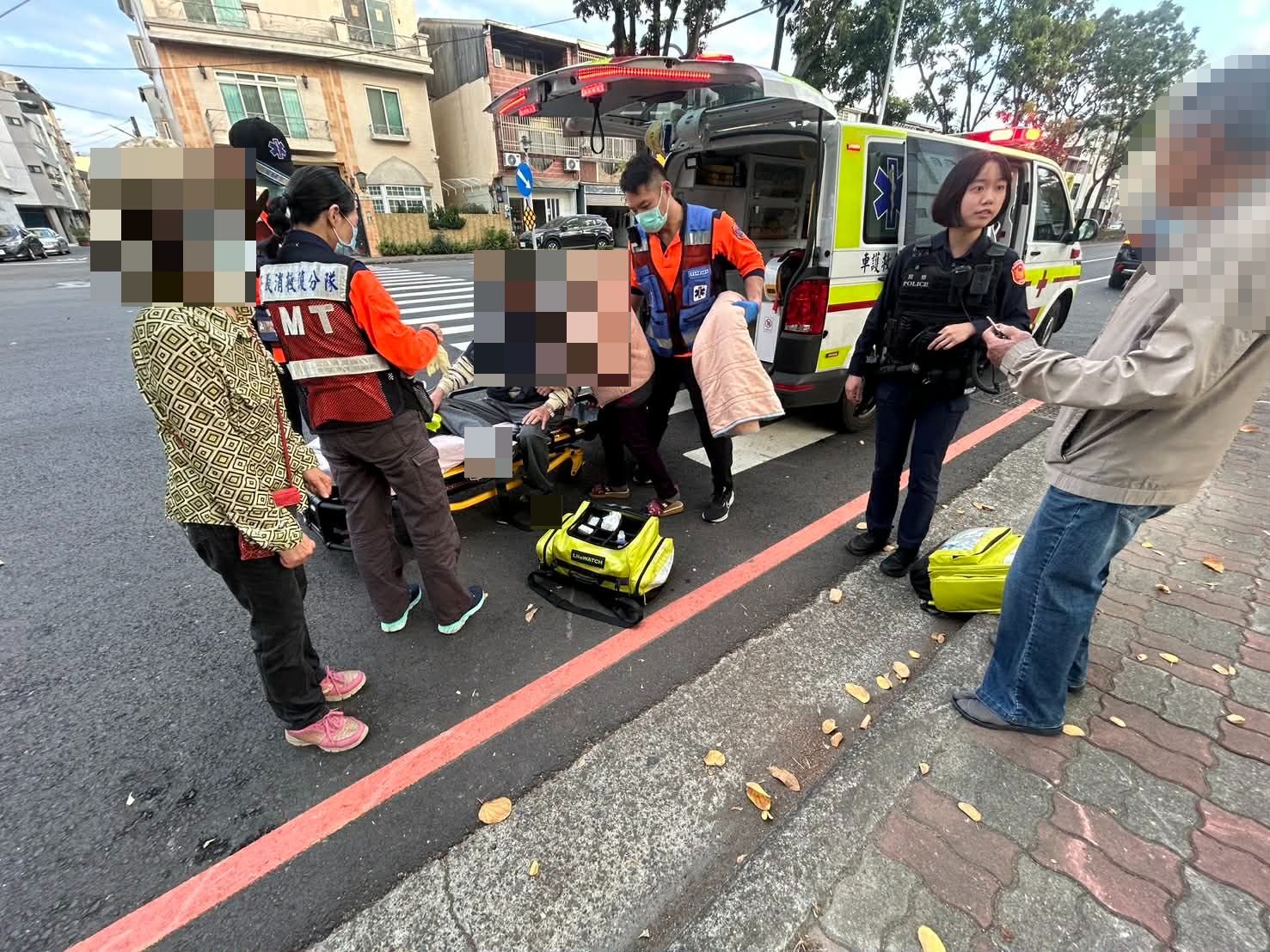 雖然老翁表示傷勢無礙,惟員警見老翁傷口仍不時滲血,且傷勢位於頭部,仍通報119人員到場並通知老翁太太到場陪同就醫,另通知老翁的媳婦及兒子前往醫院陪伴,家屬接獲通知,得知家中長輩隻身一人在外發生意外仍有員警溫暖的照護陪伴,非常感謝員警為民服務精神。