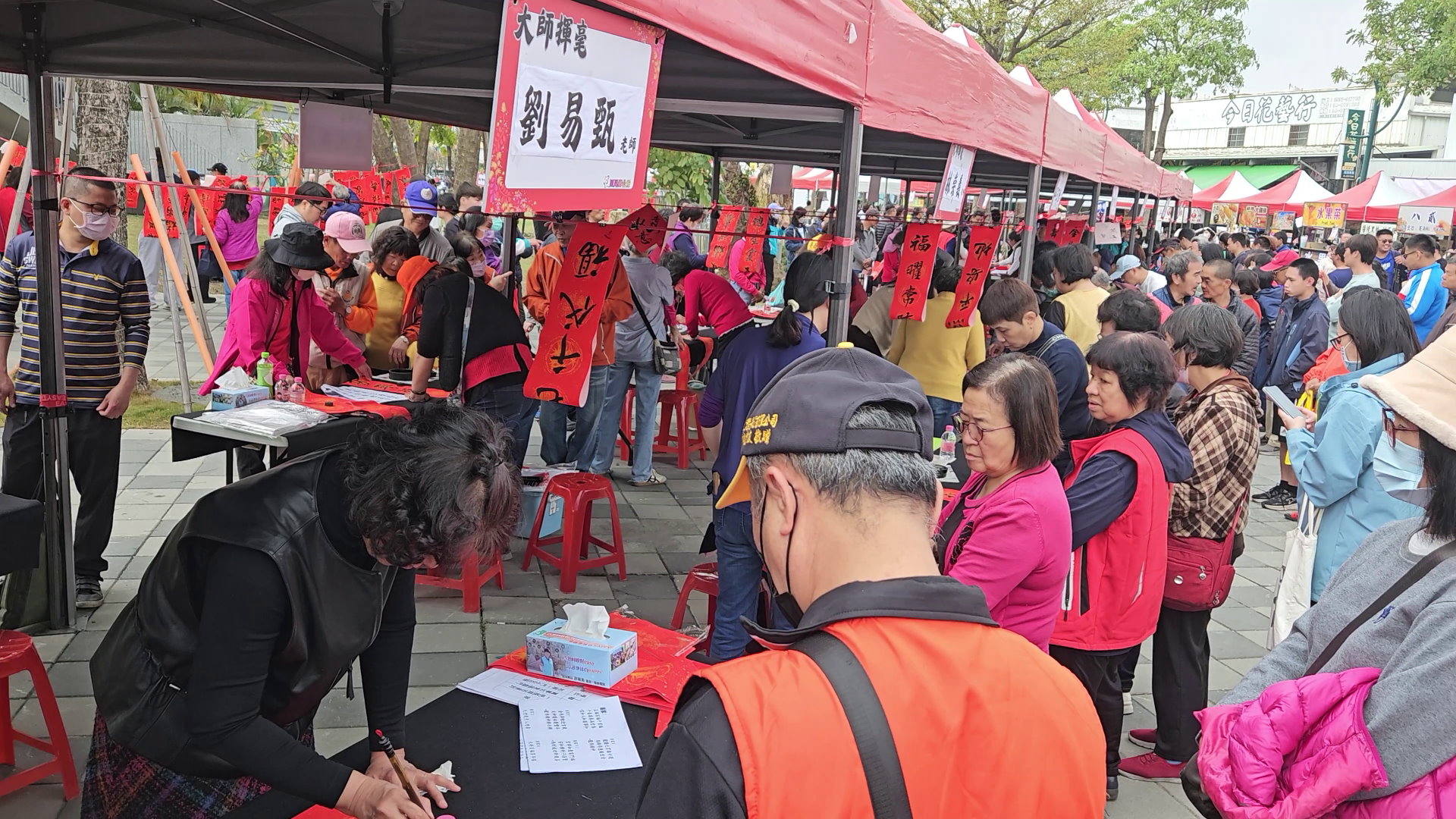 活動一開始,由田尾國中打擊合奏社帶來精彩表演,鏗鏘有力的節奏打響了年節的序曲,也拉開了本次活動的序幕,吸引了眾多民眾駐足觀賞、掌聲不斷。活動現場特別邀請了20位書法老師現場揮毫,一幅幅筆力蒼勁、寓意吉祥的春聯陸續誕生,引來大批民眾排隊索取,現場人潮擠滿整個會場,熱鬧不已。