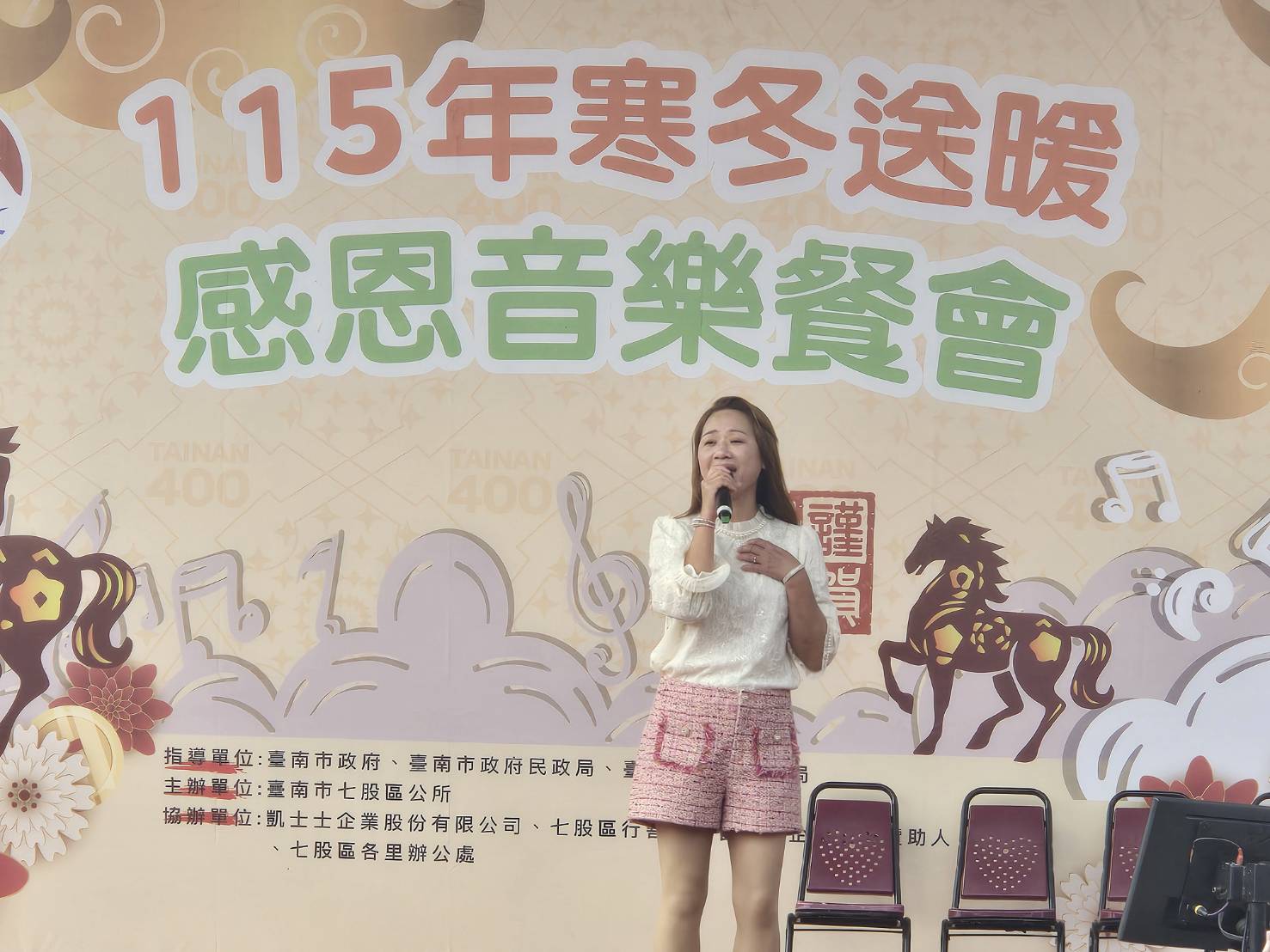 【記者田進山/台南報導】在寒冬中傳遞溫暖,七股區公所於本(1)月31日(週六)在大寮社區活動中心舉辦「寒冬送暖歲末感恩音樂餐會」。這場充滿溫馨與愛心的活動邀請119戶低收入家庭及15位課輔班小朋友參與,透過音樂、美食與生活物資輔助,為社區弱勢族群注入新年的希望與祝福。