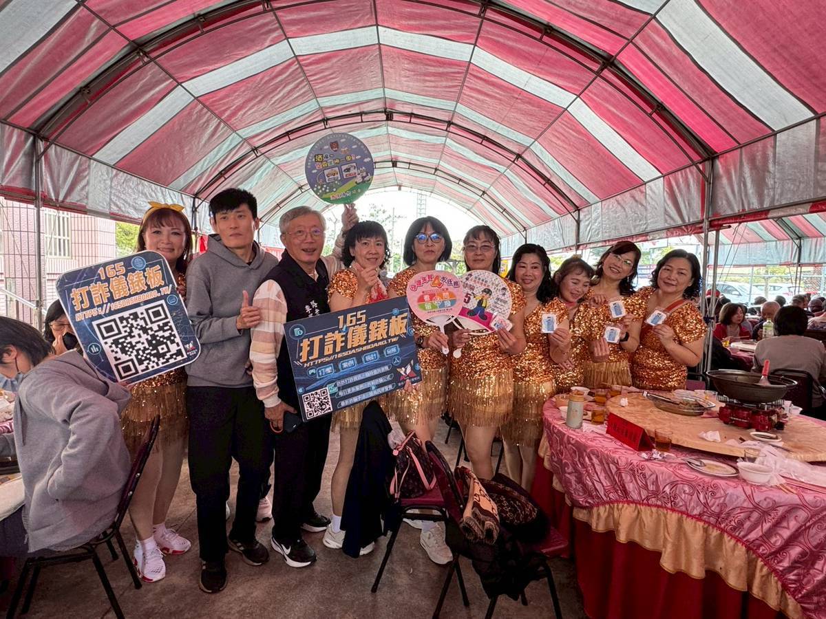 七股區區長李佳隆也以防治登革熱四大步驟-巡、倒、清、刷及以反詐騙165專線與現場長輩分享區內實際受騙案例,呼籲避免財物損失一定要牢記防詐騙三步驟,1聽、2掛、3查證,如此才能守護個人財產安全,及避免詐騙集團的危害,互動熱絡,場面溫馨。