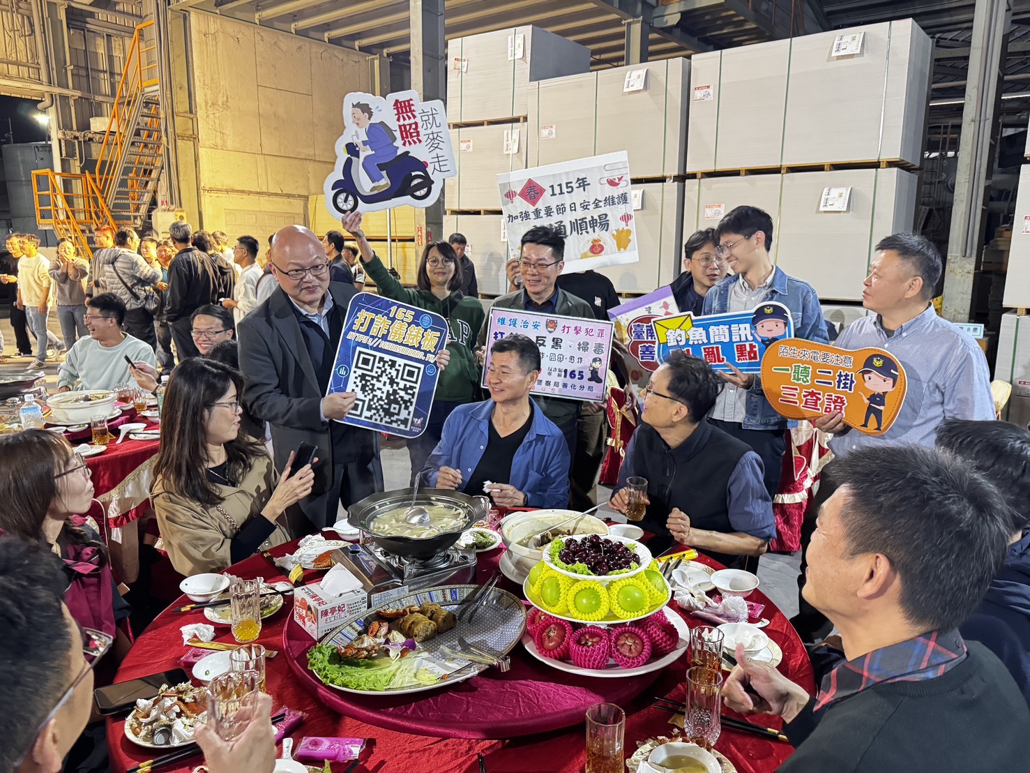 善化分局指出,「定誠營造股份有限公司」及「佳大建材工業股份有限公司」兩家公司負責人,皆為「善化警友辦事處顧問」,長期支持警政工作,並積極配合警方推動各項治安與交通安全宣導。本次警方結合在地企業攜手合作,善用尾牙餐敘人員齊聚的時機,深入職場第一線,將交通安全與反詐騙等重要觀念直接傳達給員工,展現警民合作、共同守護地方安全的具體成果。