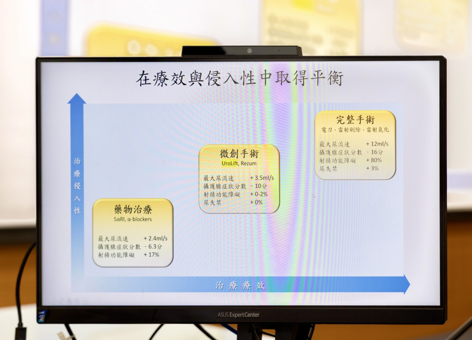 成大醫院泌尿部歐穎謙醫師指出,良性攝護腺肥大是中壯年到老年男性常見的下泌尿道功能障礙,因攝護腺壓迫尿道,導致排尿困難、尿流中斷及膀胱排空不全等症狀。藥物治療雖可改善部分排尿困擾,但長期阻塞可能造成膀胱功能惡化,且部分患者會出現姿勢性低血壓、性慾降低或性功能障礙等副作用。當藥物治療效果不佳時,便需評估手術介入,傳統刮除或雷射手術能有效解除攝護腺阻塞,但可能伴隨較長的住院期與恢復期出血風險,並面臨不可逆之射精功能障礙等副作用。