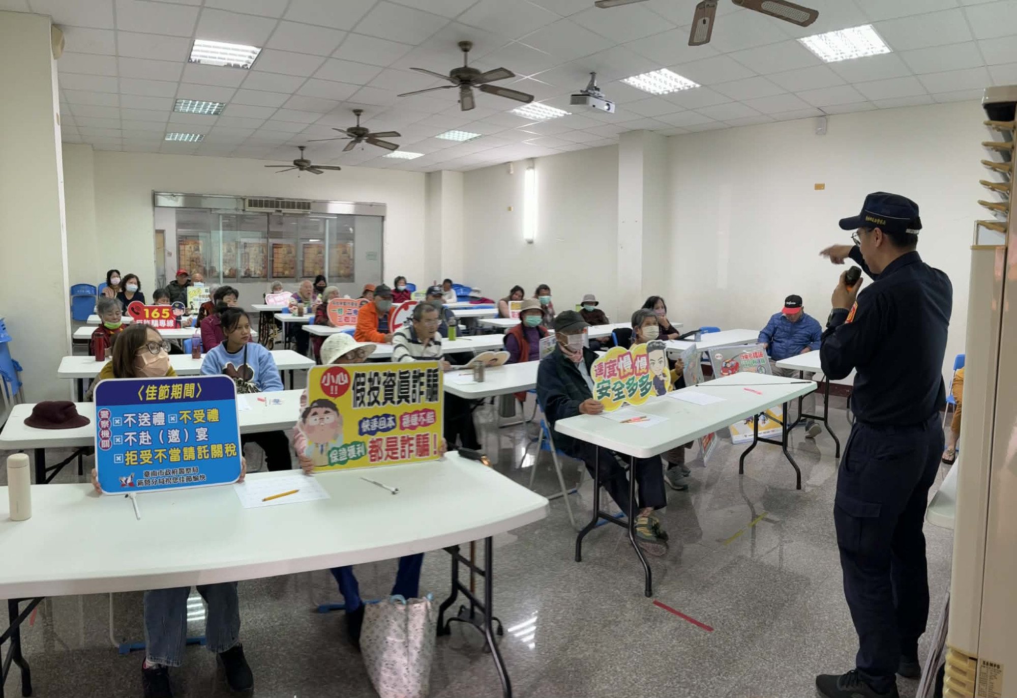 此次活動除宣講交通法令外,亦進行反詐騙宣導,並因應春節將屆,宣導員警依法執法,拒絕受(收)禮等廉政倫理觀念,現場並提供員警自行設計的實用宣導品,長者們收穫滿滿,活動圓滿順利。