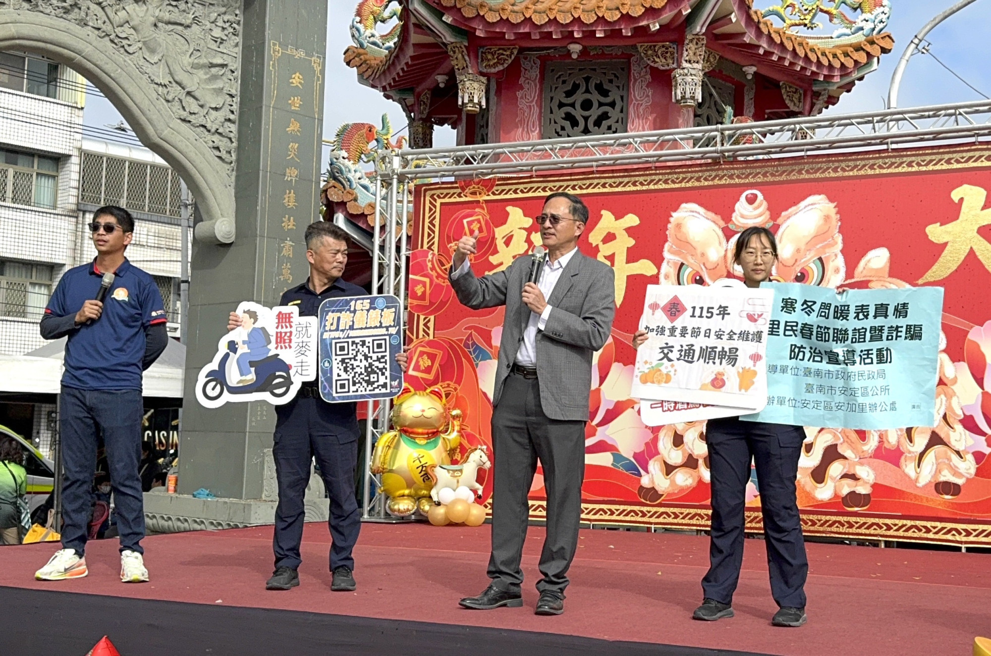 【記者田進山/台南報導】為關懷地方民眾、傳遞社會溫暖,安定區安加里辦公處於2月7日在安定保安宮廟埕舉辦「寒冬問暖表真情」活動,現場氣氛熱鬧溫馨,吸引許多鄉親攜家帶眷共襄盛舉。活動特別邀請臺南市政府警察局善化分局協辦,透過設攤宣導方式,與民眾近距離互動,讓安全觀念在輕鬆的氛圍中深植人心。