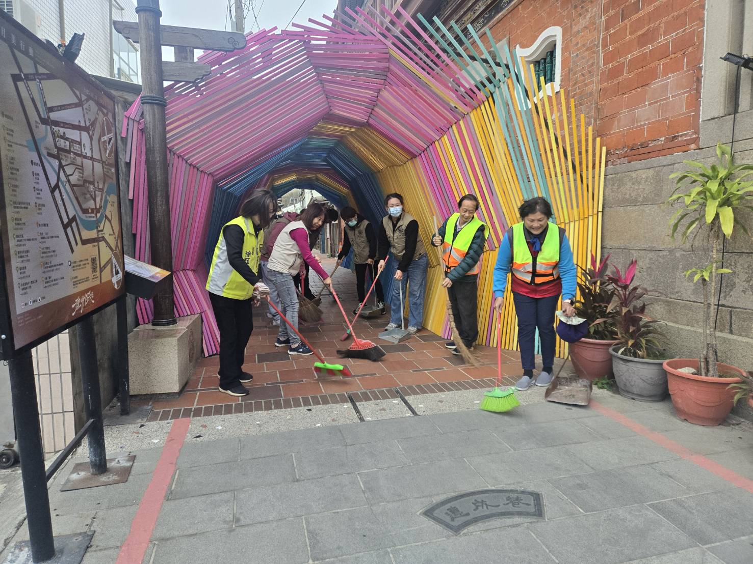 月港里中山路沿著中中山路至停車場再至護庇宮媽祖廟掃到大羣鵝肉店到停車場會合;另一組由中正路7-11超商至時代鐘錶小巷到康樂路再到親水公園、中正路裕源書局、美而美早餐店然後到親水公會合,橋南里清潔組部分,以月津國小前道路為起點沿周邊道路再到水龜伯豆花店前至親水公園入口前為止。