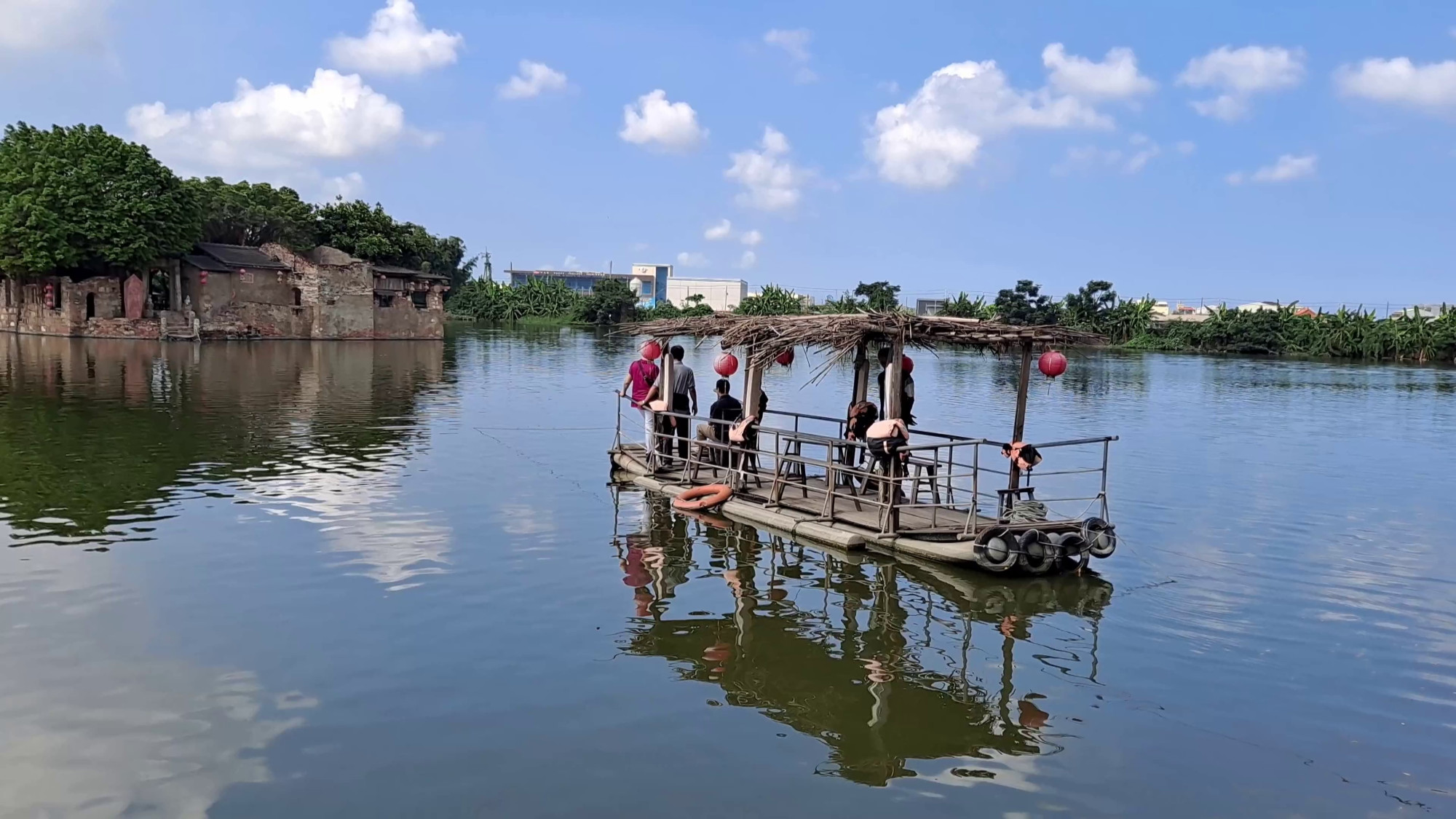 老塘湖藝術村裡還有「古早人ㄟ店」有古早味的月內餅「煎麻油蛋椪餅」,美味可口;池塘前還有一艘不用加油就可以行走的舊船在池畔上,響應環保以手方式可以載遊客上船到面祈福拜拜,登船遊湖感覺欣賞河畔美景,顯得很有浪漫氣氛。