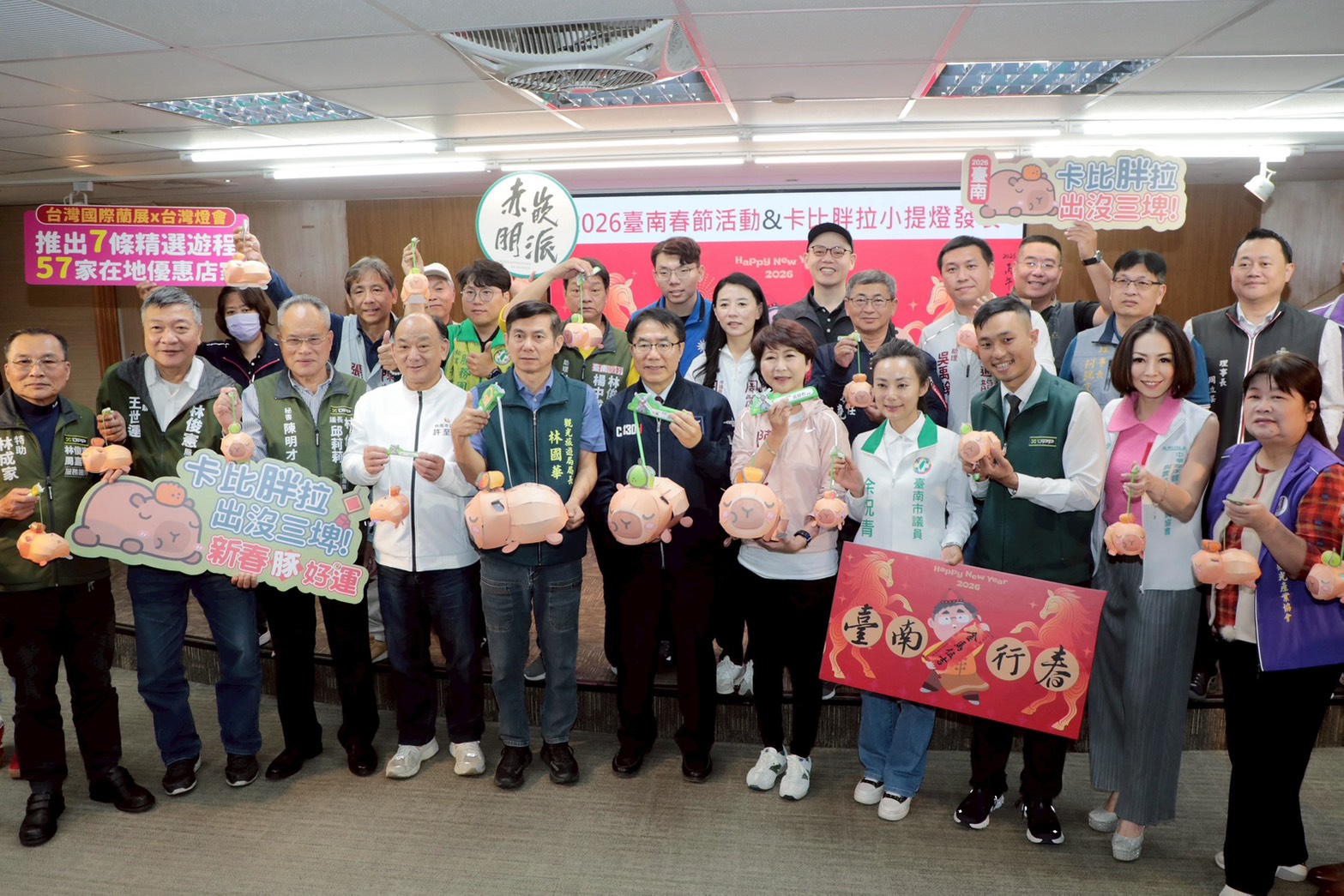 春節將至,台南市政府今(13)日透過記者會宣布「2026台南行春」活動網站正式上線,整合超過百項展覽、燈會、花海等活動及交通資訊,提供民眾一站式查詢服務。現場也發表台南限定「卡比胖拉小提燈」,將於2月27、28日於虎頭埤風景區、葫蘆埤自然公園及德元埤荷蘭村限量發送,邀請全國民眾從春節一路玩到元宵,感受台南旅遊魅力。