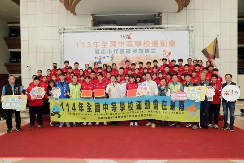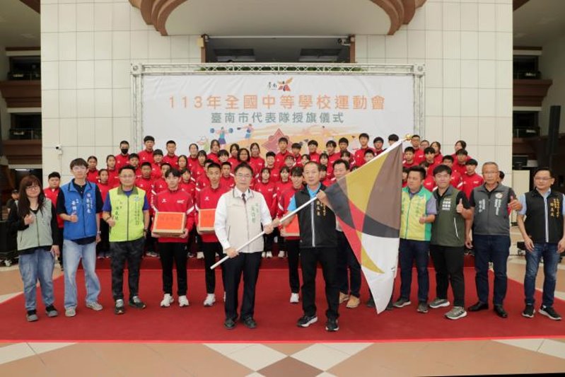 【記者黃石泉/台南報導】113年全國中等學校運動會即將在4月20日至25日在台北市舉行,台南全中運代表隊共派出1,078位選手參加22種競賽,今(12)日由台南市長黃偉哲親自授旗給代表隊,由台南市體育總會副理事長張永泉代表接受授旗。黃偉哲鼓勵台南小將們全力以赴,「大家都是台南之光!」