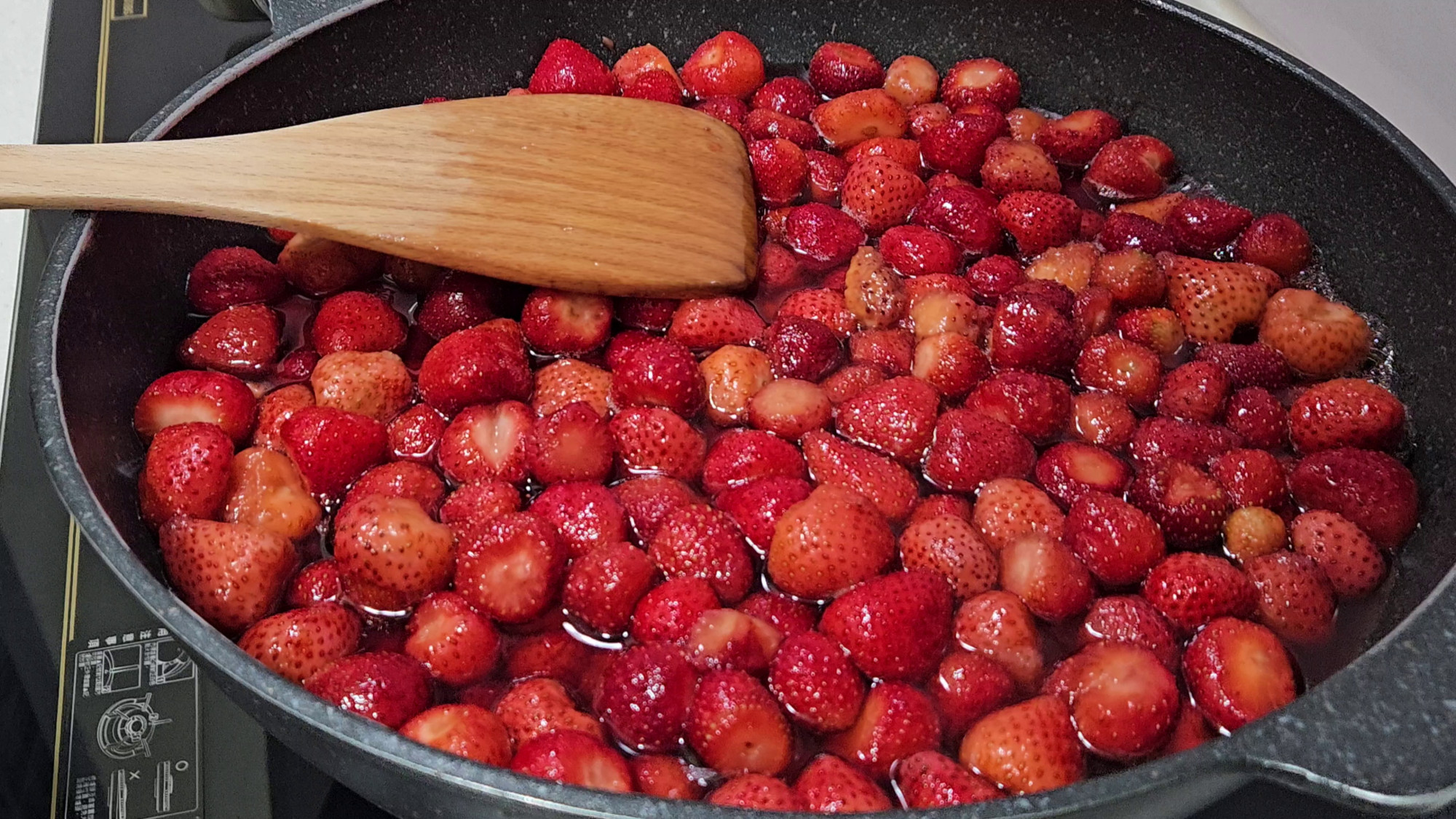 將草莓放進鍋中繼續熬煮