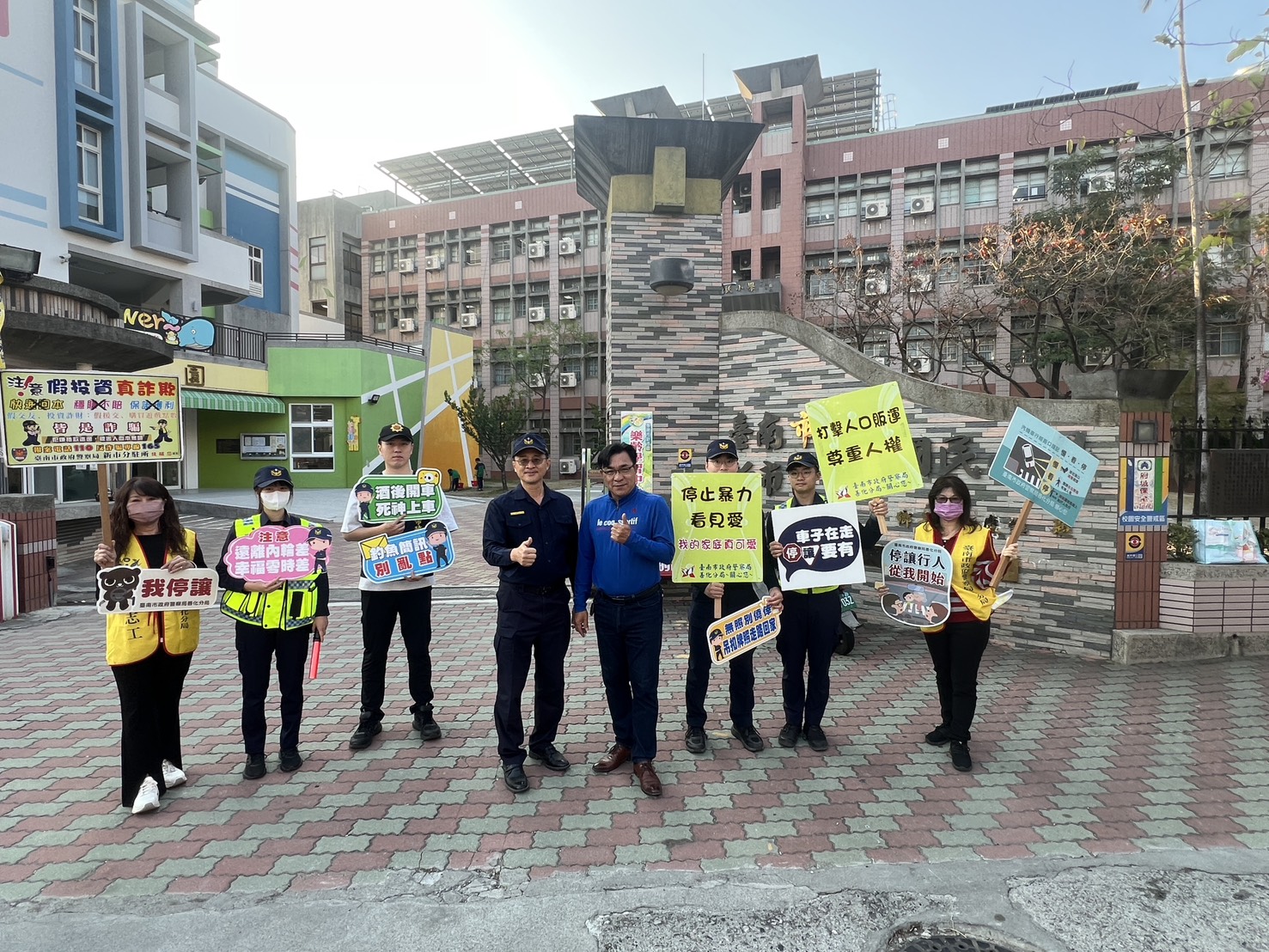 善化分局分局長劉柏陞表示,兒少保護與校園安全維護一直是警察重點工作項目,孩子是國家未來的主人翁,配合校園執行護童勤務,讓學童們能平安上學、快樂回家,及享有和諧、健康的求學環境,順著時光快樂成長!