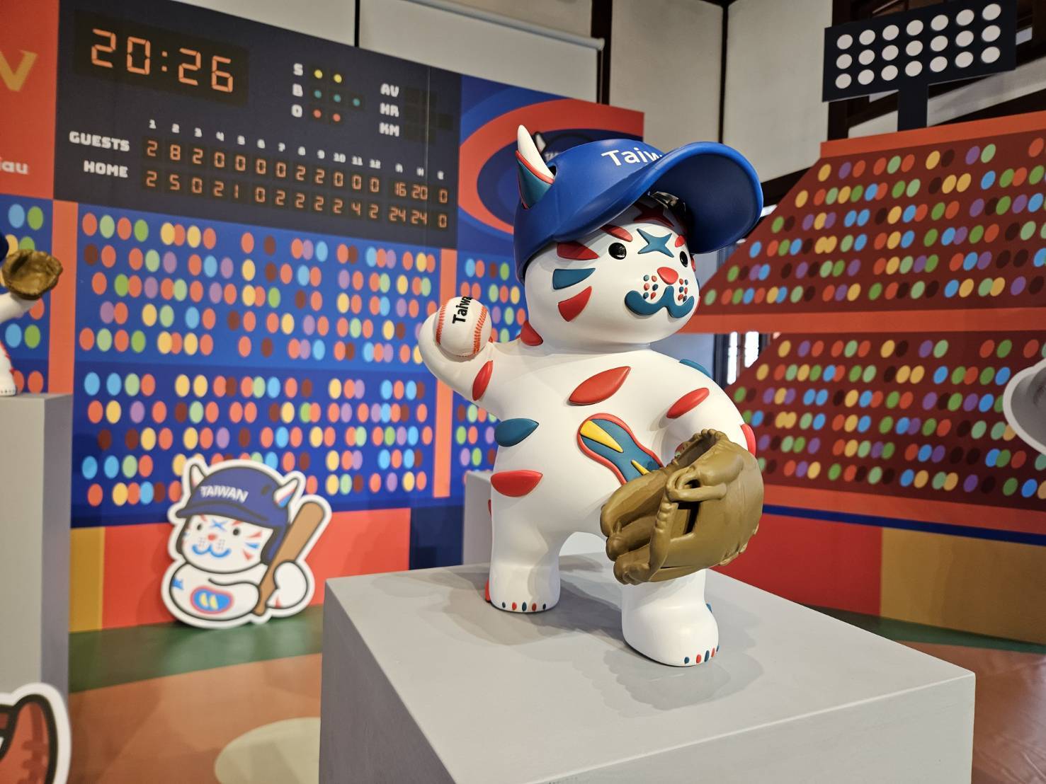 「巷仔Niau」的設計語彙取材自臺南在地文化符碼,包括荷蘭商船意象、孔廟燕尾脊線與鯤鯓海浪紋理等元素,形塑出溫潤親切、貼近土地的城市氣質。本次特展透過場景建構與故事鋪陳,讓角色穿梭於巷弄日常與熱血球場之間,每一幕皆映照城市生活片段與集體記憶。棒球在此不僅是競技運動,更象徵人與土地之間的連結與情感凝聚。展場特別規劃手拿牌道具及拍照互動區,邀請民眾與巷仔Niau同框合影,無論是定格揮棒瞬間的動感畫面,或捕捉角色俏皮神情的溫暖時刻,都讓觀展過程轉化為可帶走的專屬回憶。