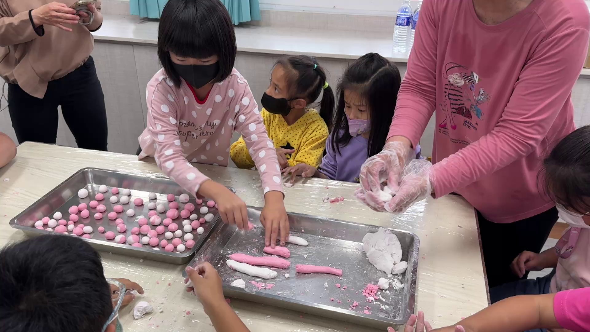 四年級學生曾聖展分享:「區長跟我們一起搓湯圓,很親切也很好玩。我覺得湯圓圓圓的,就像我們大家在一起很團結。」