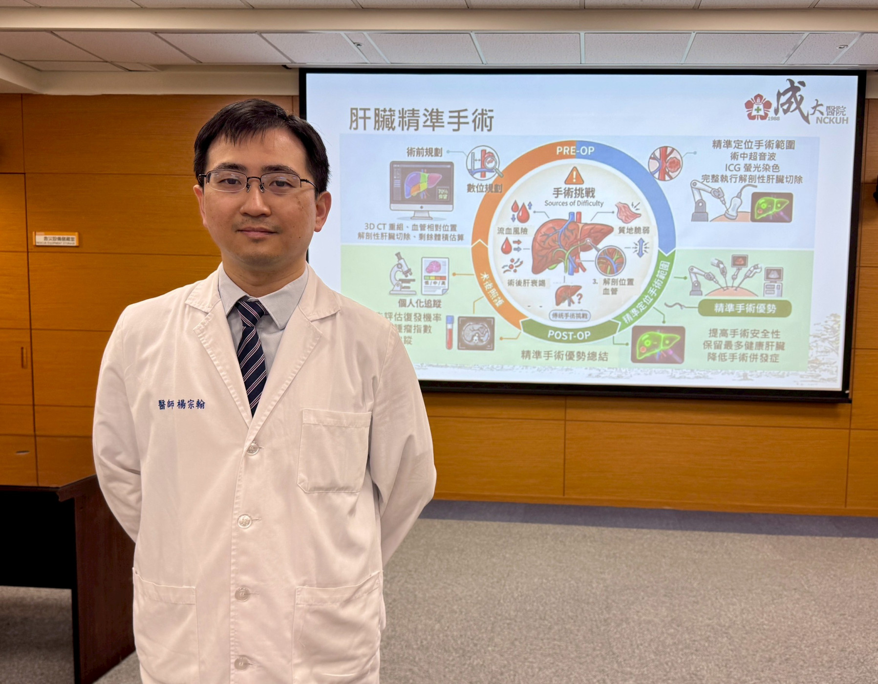 圖:成大醫院一般外科暨移植外科楊宗翰醫師:3D影像重組結合ICG螢光導航 精準肝臟手術提升肝癌根治成效(記者田進山攝)